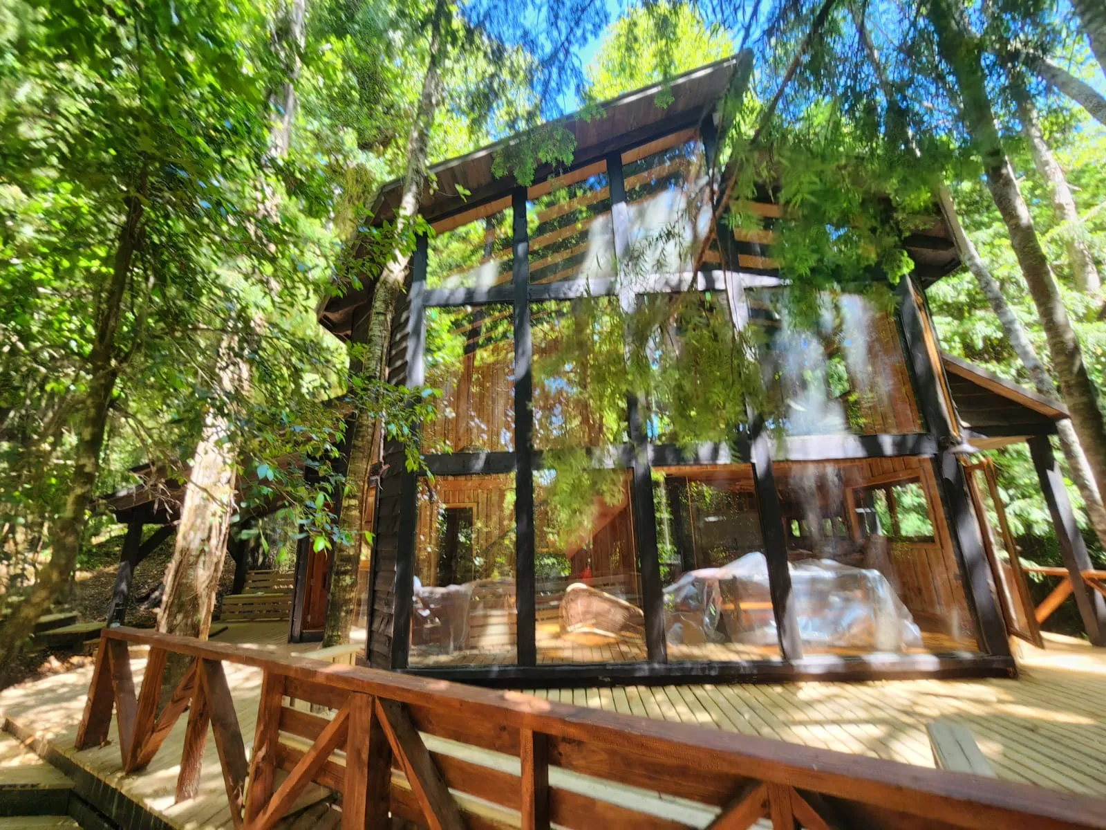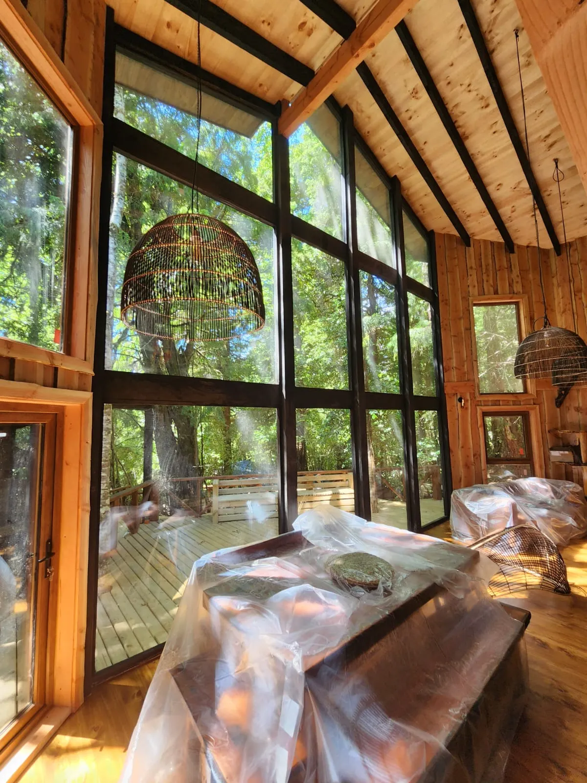 proyecto se concibe como una vivienda de 115 m², donde la forma arquitectónica se transforma en el elemento articulador del diseño. La casa se caracteriza por una gran fachada hexagonal, concebida estratégicamente para captar y distribuir la luz natural hacia todos los recintos del sector público, al mismo tiempo que enmarca el bosque y potencia las vistas desde el interior, convirtiendo el paisaje en parte activa de la experiencia espacial.