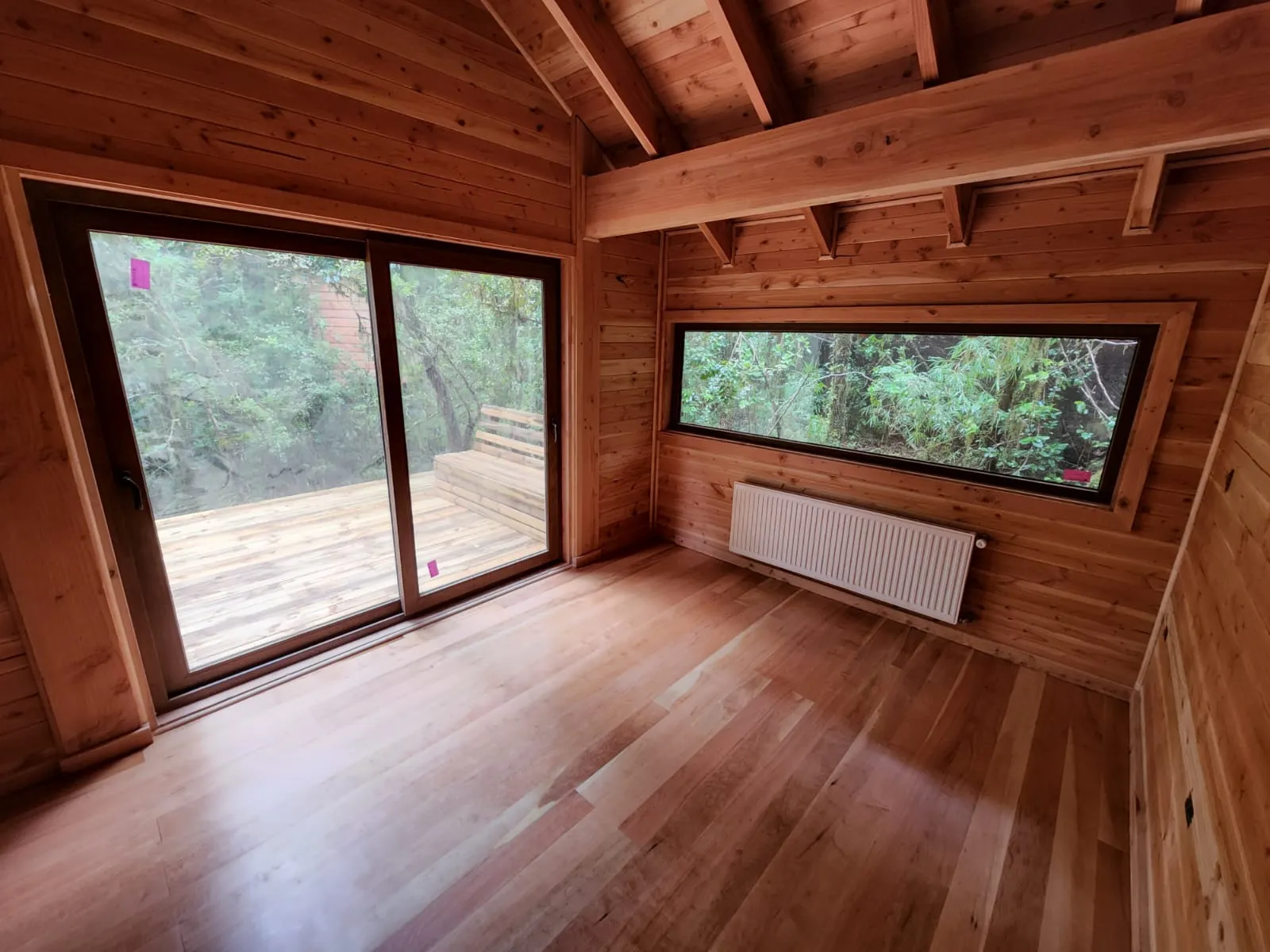 La casa se implanta de forma estratégica, abriendo sus mayores vanos y vistas hacia el sector norte, aprovechando al máximo el asoleamiento y las visuales, mientras que hacia el sur se disponen vanos más controlados y de menor tamaño, reduciendo pérdidas térmicas y reforzando el comportamiento energético de la vivienda. Esta decisión proyectual permite un equilibrio entre eficiencia, iluminación natural y relación con el entorno.