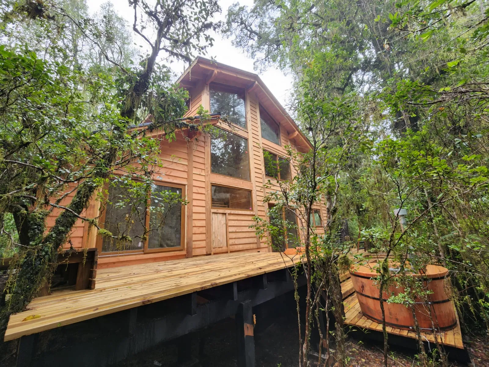 Formalmente, la arquitectura se expresa a través de una cubierta a dos aguas desplazada, que otorga carácter e identidad al proyecto, junto con pilares robustos que definen la estructura y transmiten una sensación de solidez y permanencia. Estos elementos constructivos no solo cumplen un rol estructural, sino que también se integran al lenguaje arquitectónico de la vivienda, reforzando su presencia y coherencia formal.